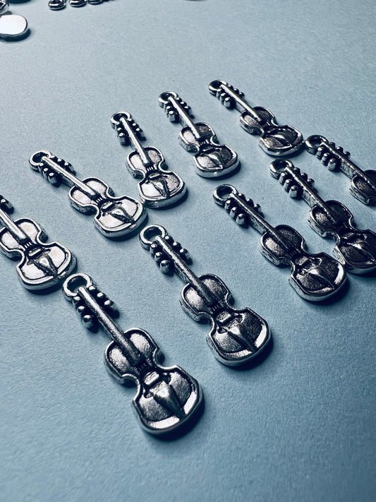 MICRO Miniature Double Base - Mini Violins - Silver Violin Charm - Bag of 5/10 Mini Violins - I Spy Objects - Mini Objects Speech Therapy -
