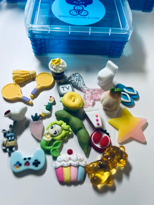 Say & Play Mini Object Themed Therapy Set Trinkets for Speech Therapy Categories- Sorting Set in Organizer Set with 200+ Trinkets for themes