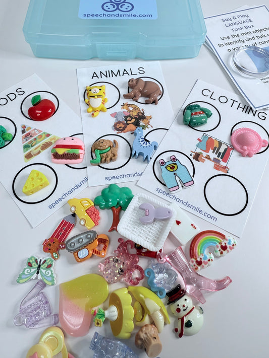 LANGUAGE Task Box with Mini Objects Speech Therapy Activity Box Language Concepts Box Speech Therapy Activity