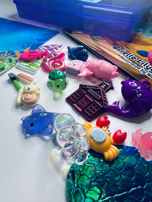 Story Kit Mini Objects for Fishy Fishy Goes to School – INCLUDES BOOK Preschool Rhyme – Ocean Theme Speech Therapy