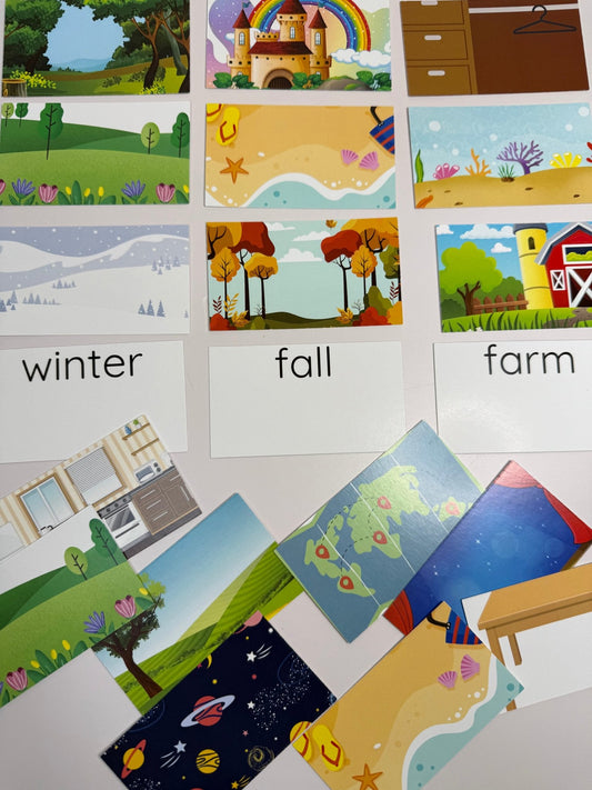 Theme Cards for Mini Objects – Double-Sided flash cards for Speech Therapy, Learning Centers, Professionally Printed