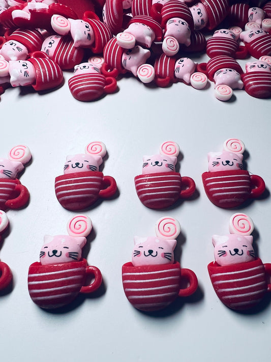Gato en una baratija de taza-objeto de gato rosa-mini objeto de gato-baratijas de mascotas-terapia del habla mini objetos-Doodads-baratijas-cabujones