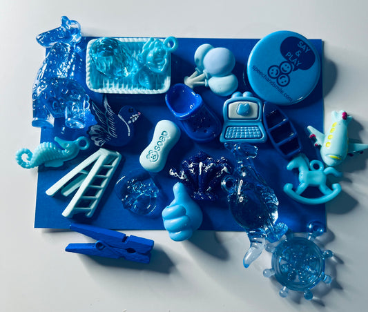 BLUE Color Sort Trinkets By Color with Card Sorting Mini Objects Learn Colors Preschool Activity Blue Speech Therapy Minis by Color