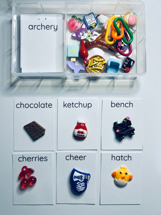 Speech Therapy Trinkets for /ch/ sound Say and Play Mini Objects Kit Articulation Mini Objects Speech Therapy Kit
