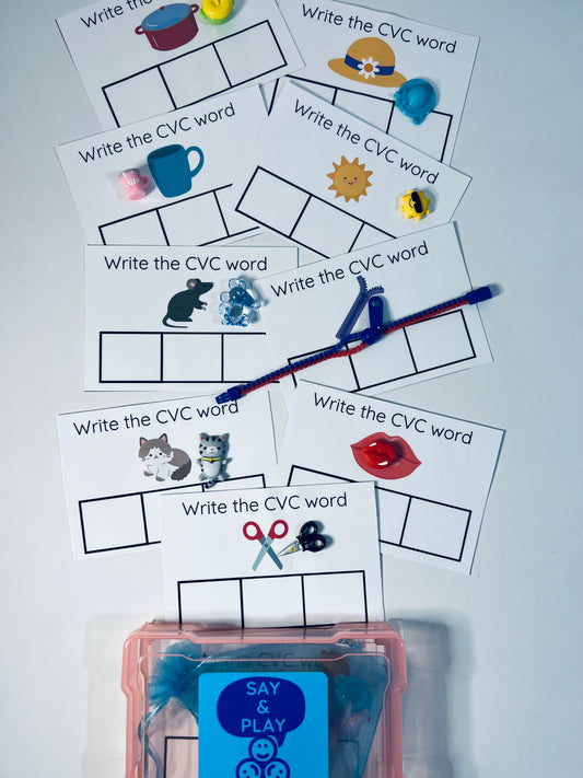 Say and Play CVC Language Task Box SPELLING kit Mini Objects Speech Therapy CVC Objects Montessori Language Objects