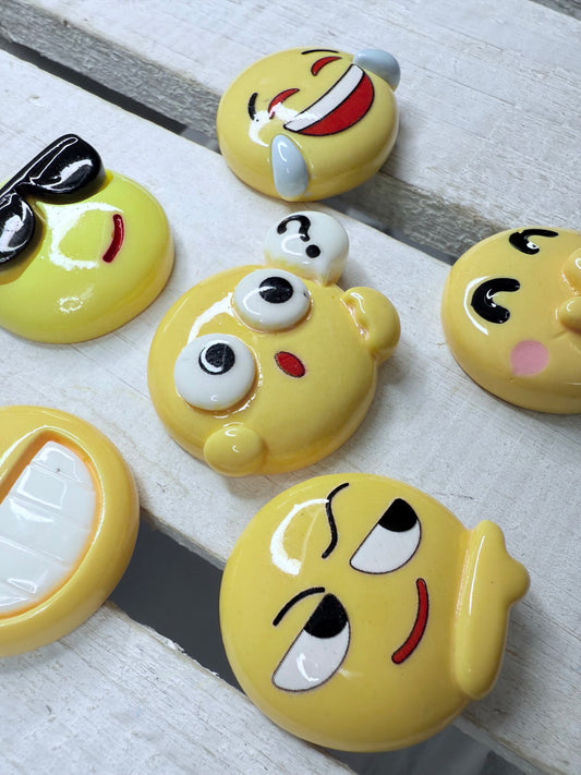 Emoji Trinkets – Emotions Set of 6 Emoji Mini Objects – 3D Resin Flat Backs for Speech Therapy Minis Doodads , DIY Crafts,