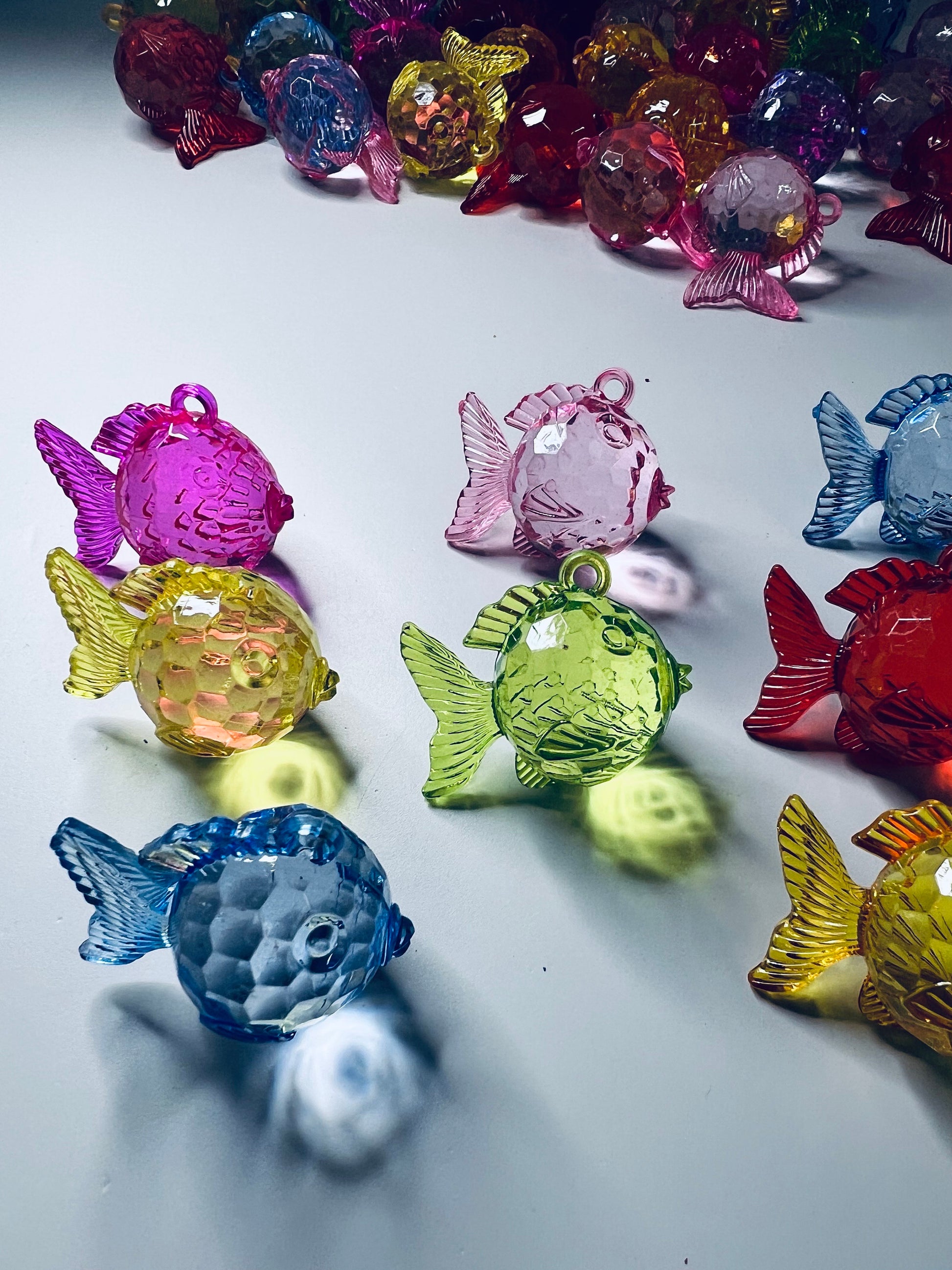 Baratijas coloridas de peces de colores - Mini objetos de peces Terapia del habla - Baratijas de peces acrílicos - Baratijas oceánicas - Doodads - Peces de colores en miniatura