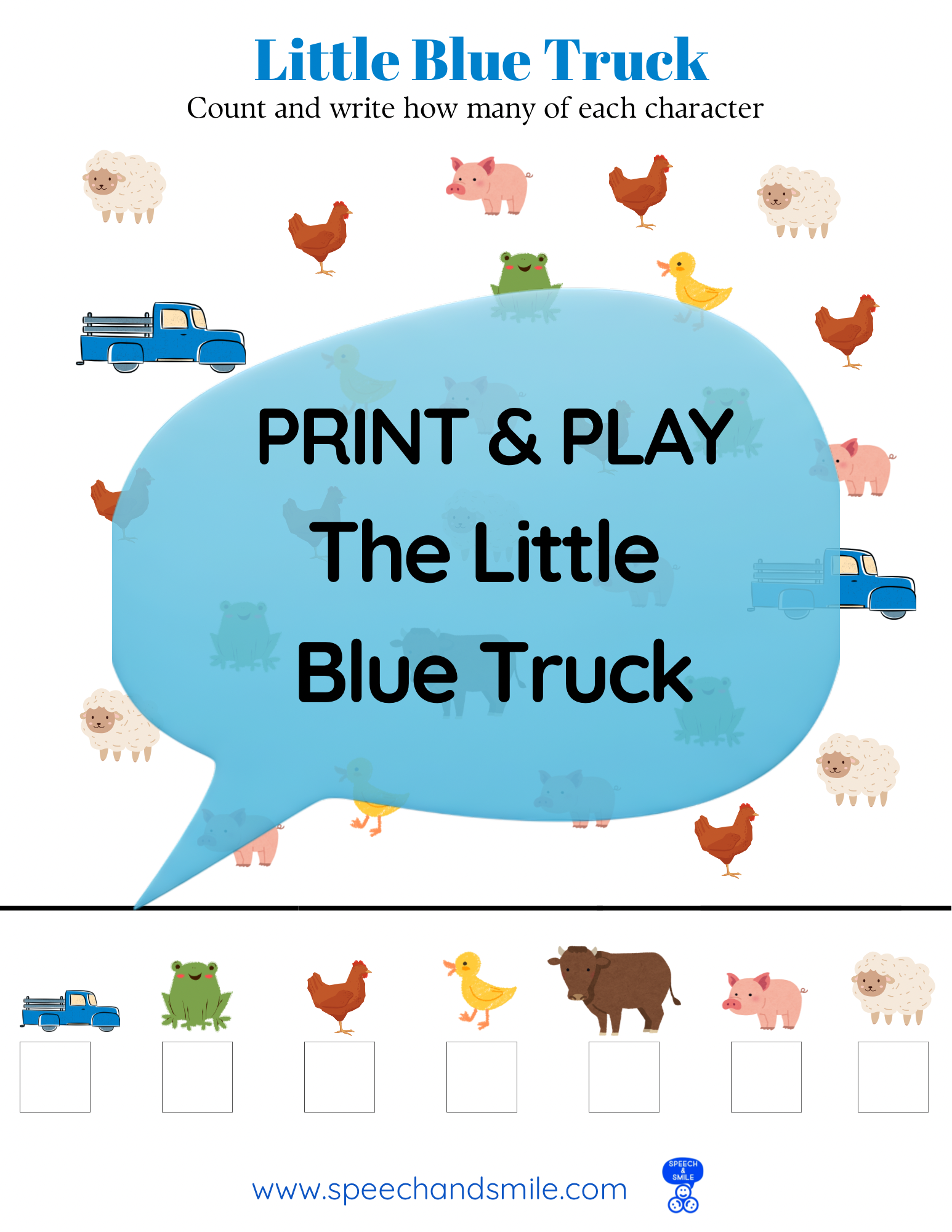 Say and Play Story Kit Companion Pack – Little Blue Truck PRINTABLE ACTIVITIES Speech & Language Instant Download Book Extension