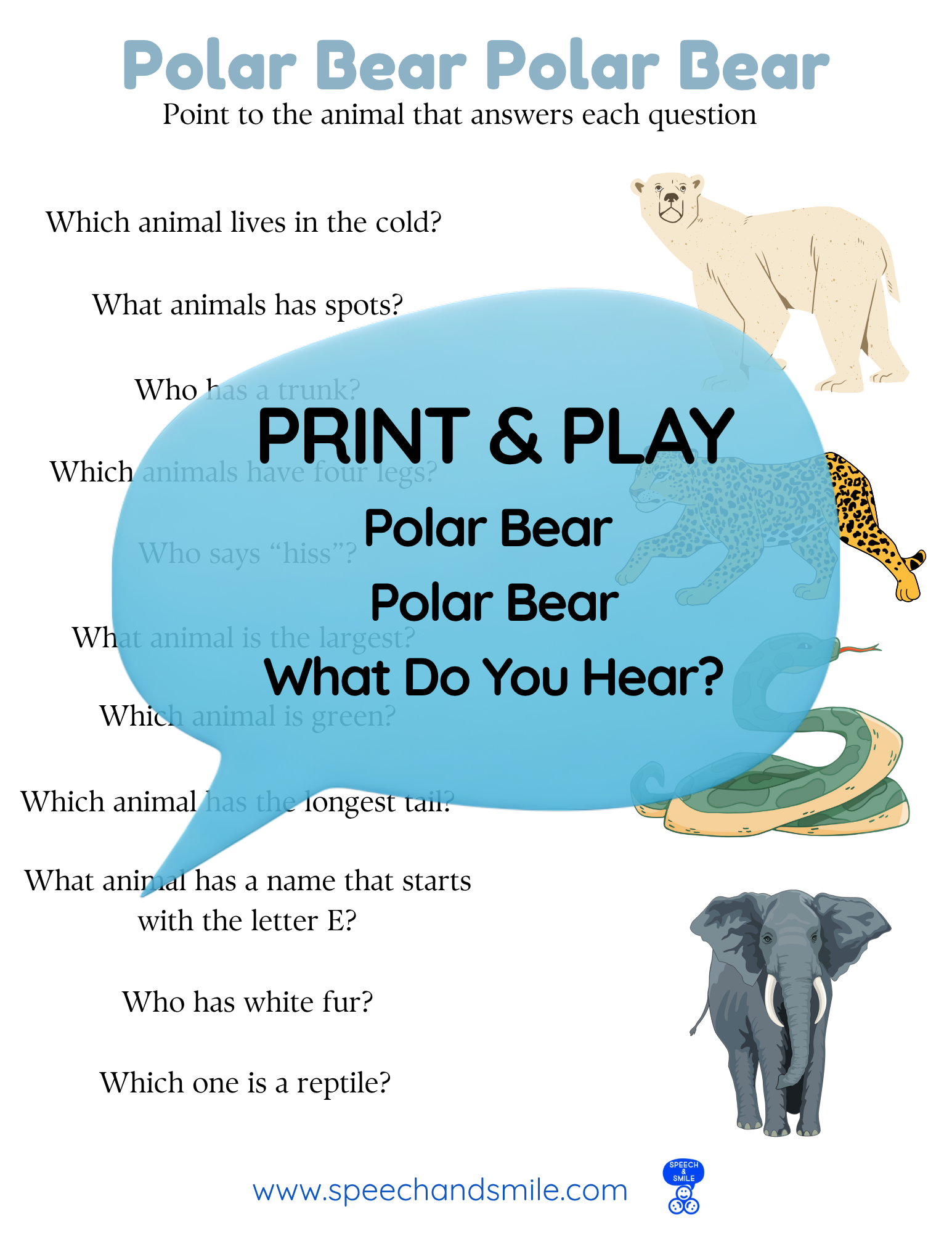 Say and Play Story Kit Companion Pack – Polar Bear Polar Bear What do you Hear? PRINTABLE ACTIVITIES Instant Download Book Extension