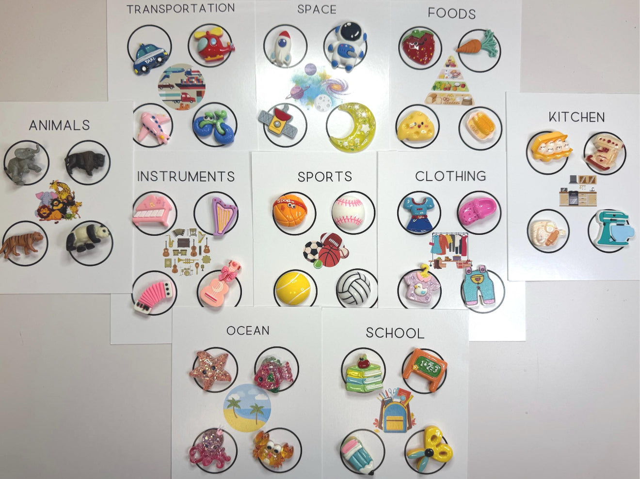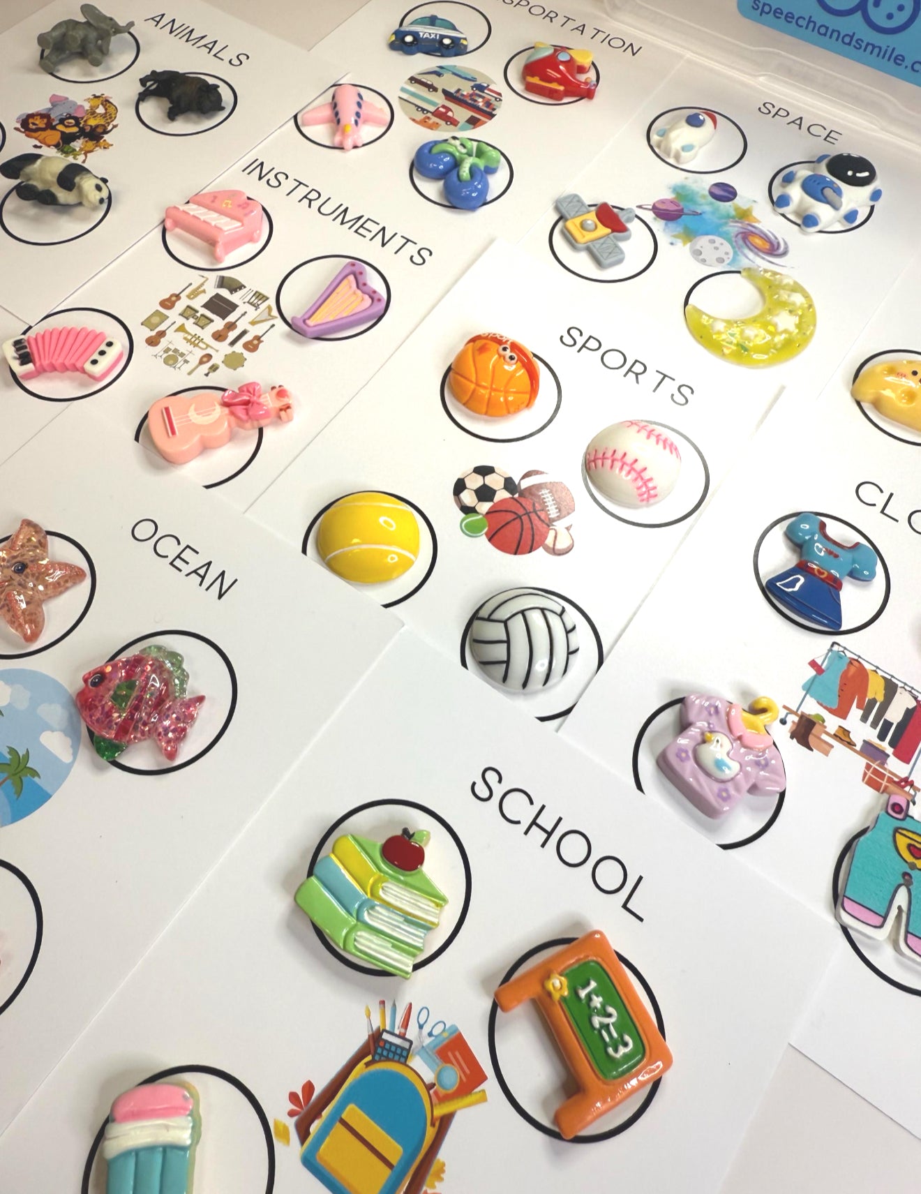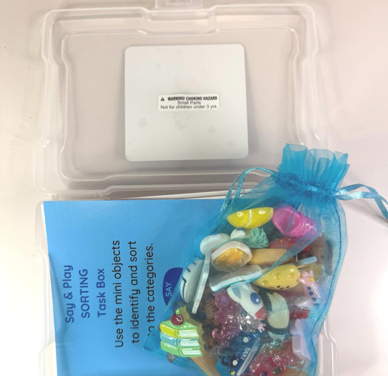 Caja de tareas de clasificación con miniobjetos Caja de actividades de logopedia Caja de conceptos del lenguaje Miniobjetos de logopedia