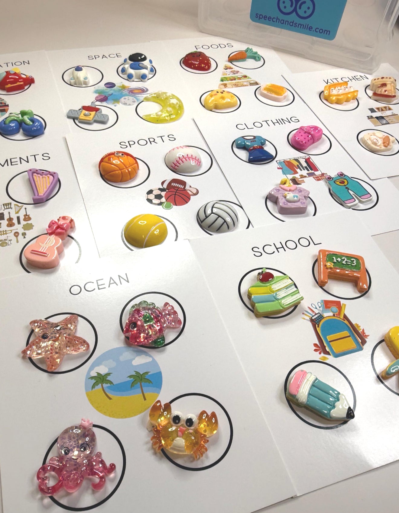 ¡Usa los objetos para articulación, contenedores sensoriales, veo, veo, juegos y más!