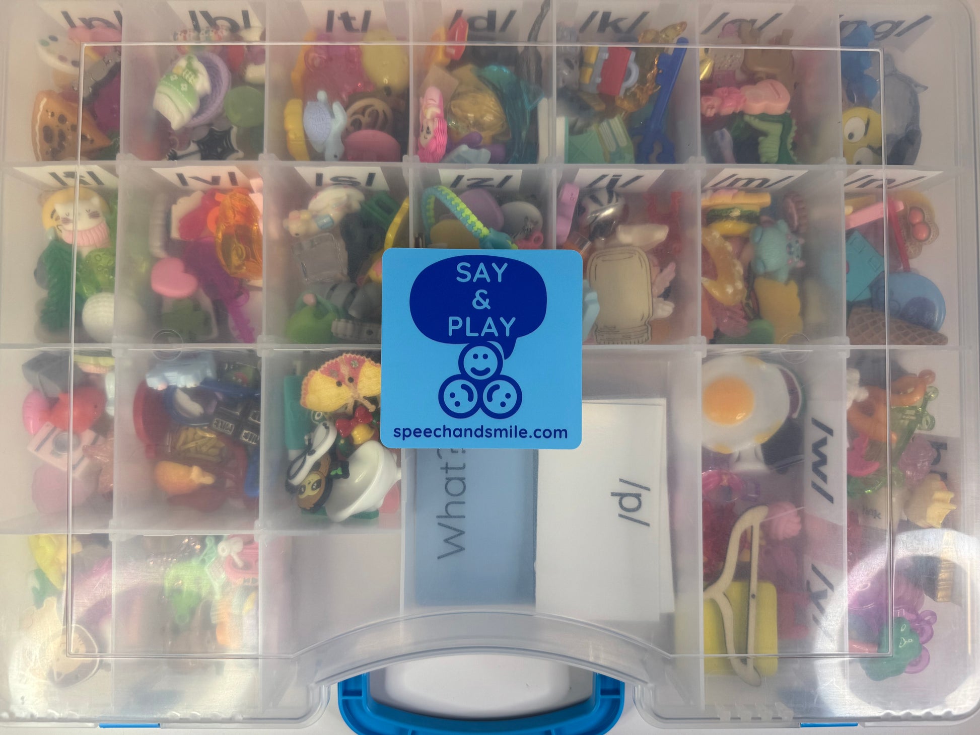 Fácil de usar y llevar a otros lugares, viajes, aulas, etc. ¡Probado por estudiantes y SLP! El kit de sonidos del habla Say & Play con miniobjetos es más efectivo, divertido y atractivo cuando se trabaja con los sonidos del habla. El kit está diseñado para ser un práctico estuche de almacenamiento para llevar que permite realizar ejercicios de articulación rápida y eficiente con diferentes grupos, aulas y ubicaciones.