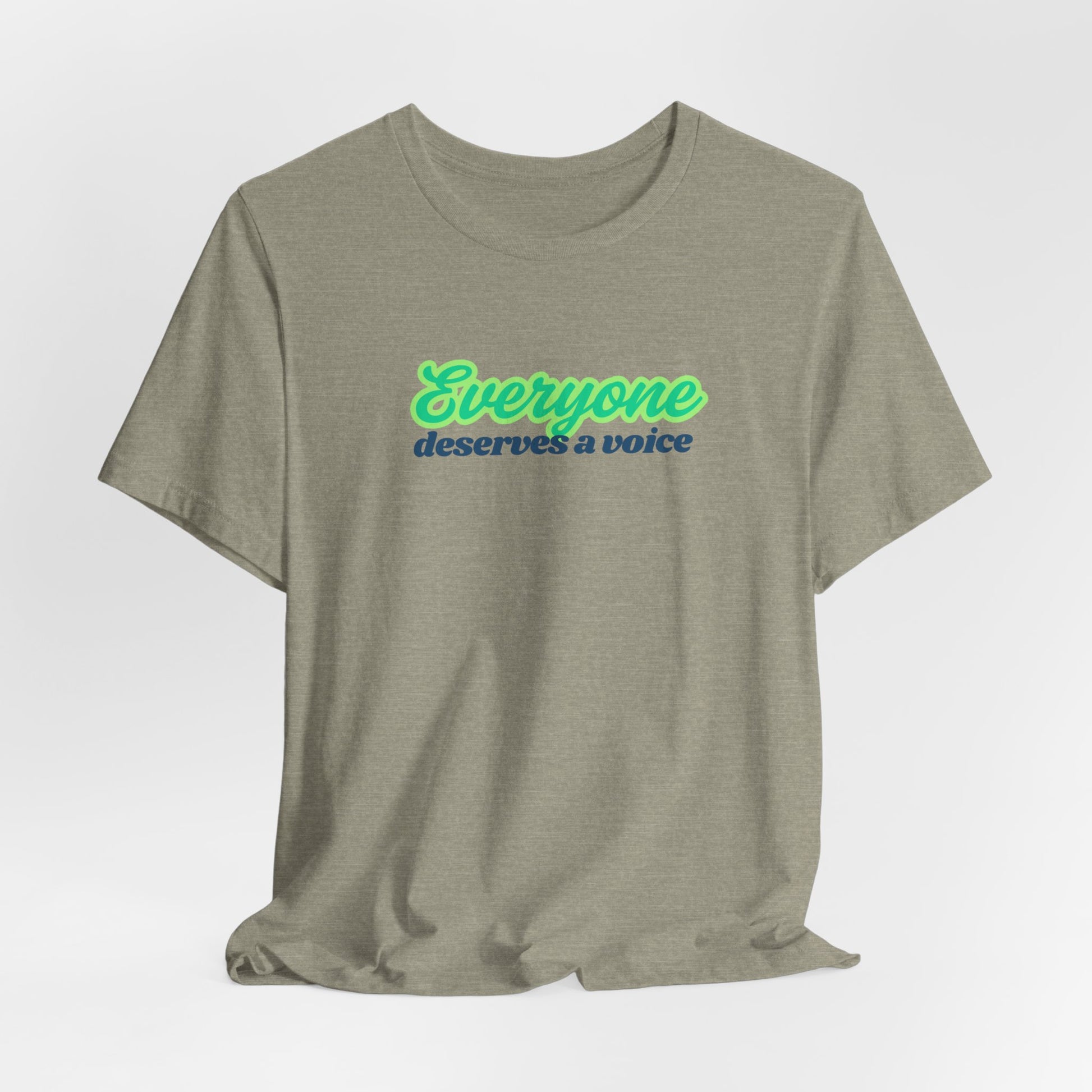 A unisex jersey short sleeve t-shirt featuring a unique design for speech therapists. This shirt is a perfect gift for speech therapy professionals, showcasing the importance of giving everyone a voice. The lightweight fabric and retail fit make it ideal for both active and leisure wear, suitable for casual and semi-formal settings. Relevant to speech therapists and those passionate about communication and helping others find their voice. Perfect for occasions like Speech Therapy Awareness Month or as a thoughtful gift for a speech therapist.
