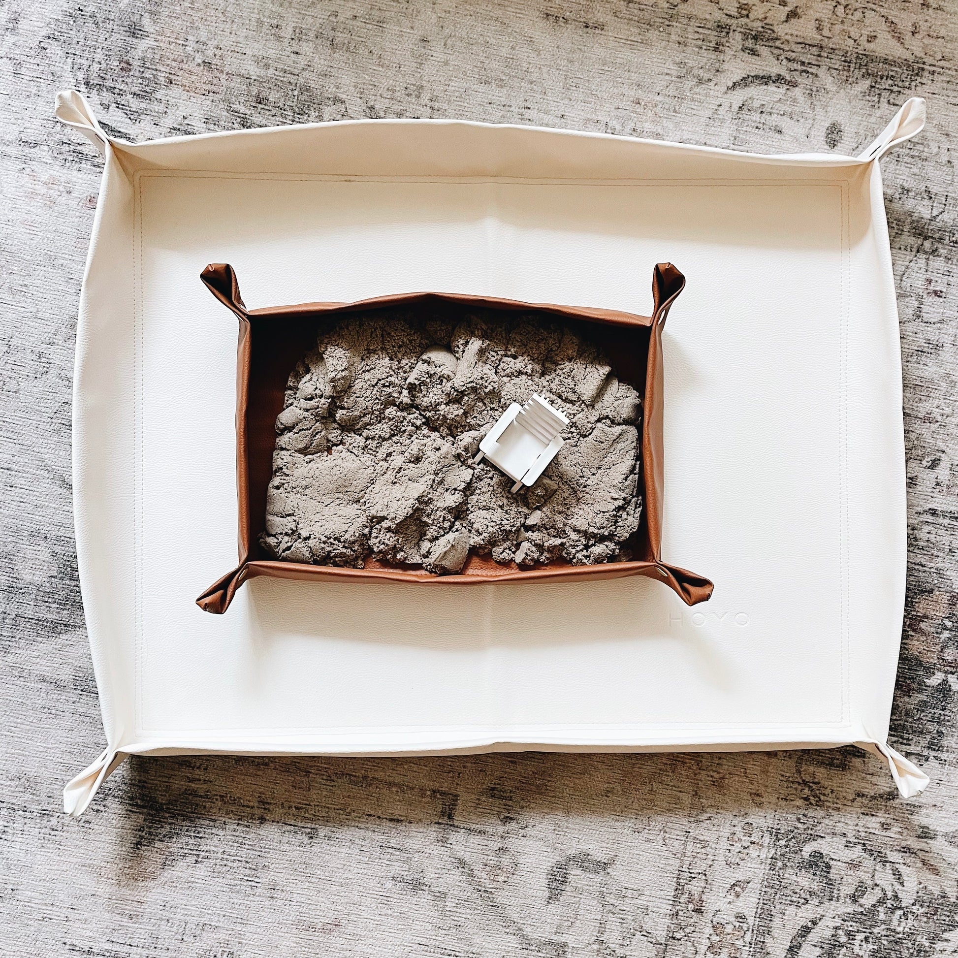 HOYO's versatile vegan leather mat can be used for sensory play, meal times, traveling, or even as a changing pad! Easy to wipe clean and store in it's reusable storage bag.