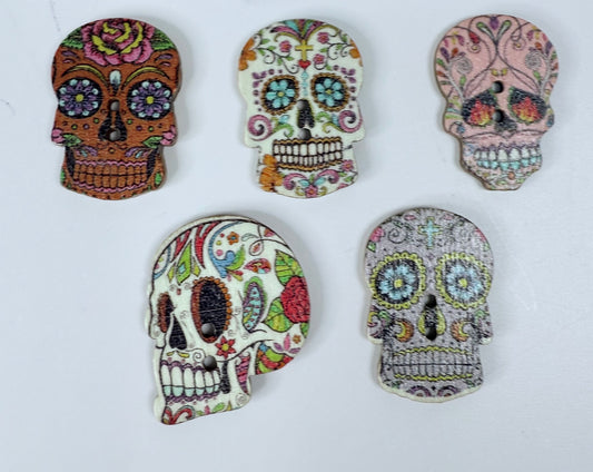 Skull Wooden Buttons Set of 5 Day of the Dead, Sugar Skull Minis Skelton Trinket Bulk Mini Objects