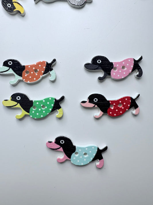 Dachshund Dog Trinkets Bulk – Wood Dog Button Set of 5 – Pet Theme Mini Objects – Dachshund Buttons for Crafts & Speech Therapy
