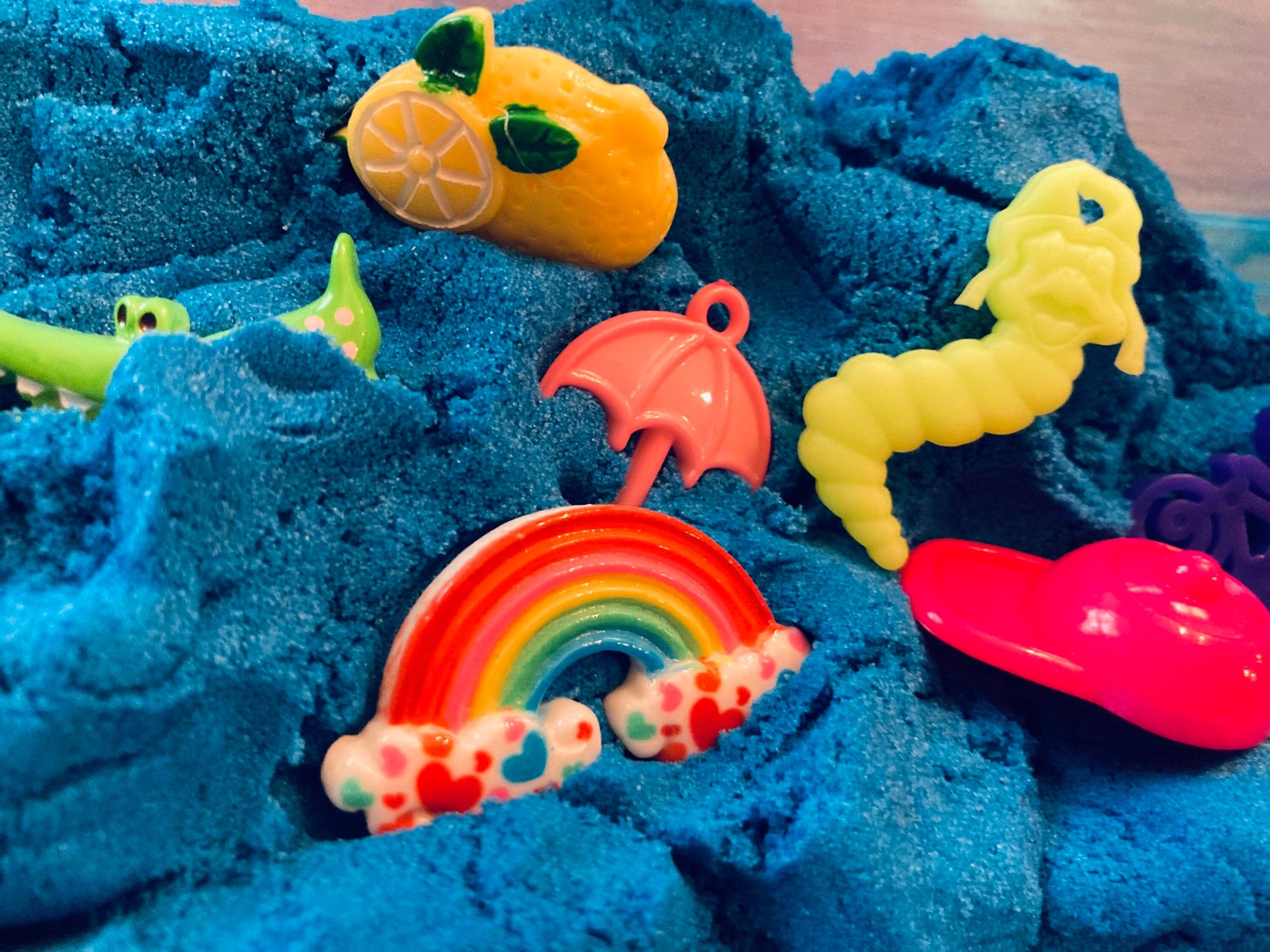 Hide the objects in the kinetic sand. Use the included mini shovel or fingers to find them.