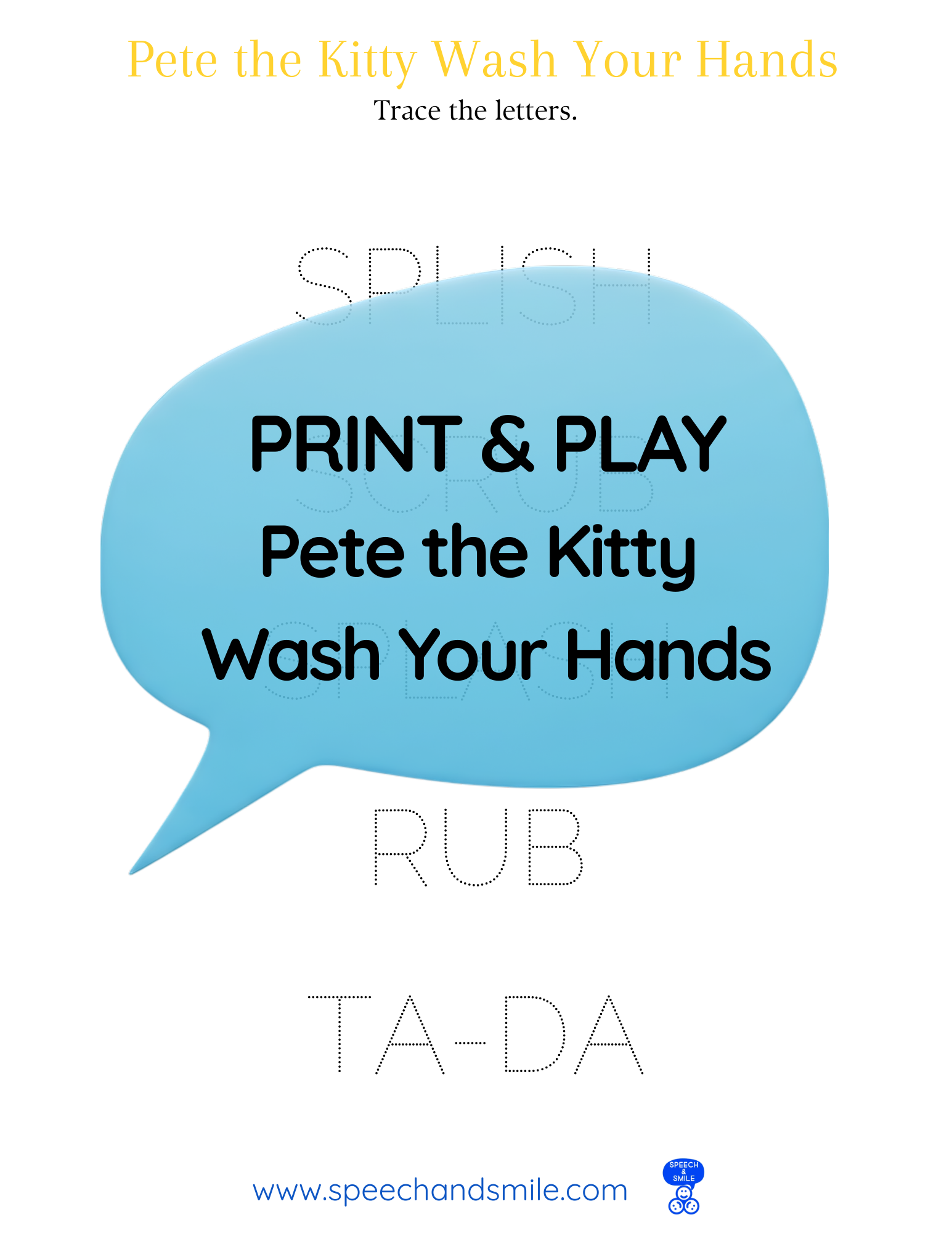 Say and Play Story Kit Companion Pack – Pete the Cat Wash Your Hands PRINTABLE ACTIVITIES Instant Download Book Extension