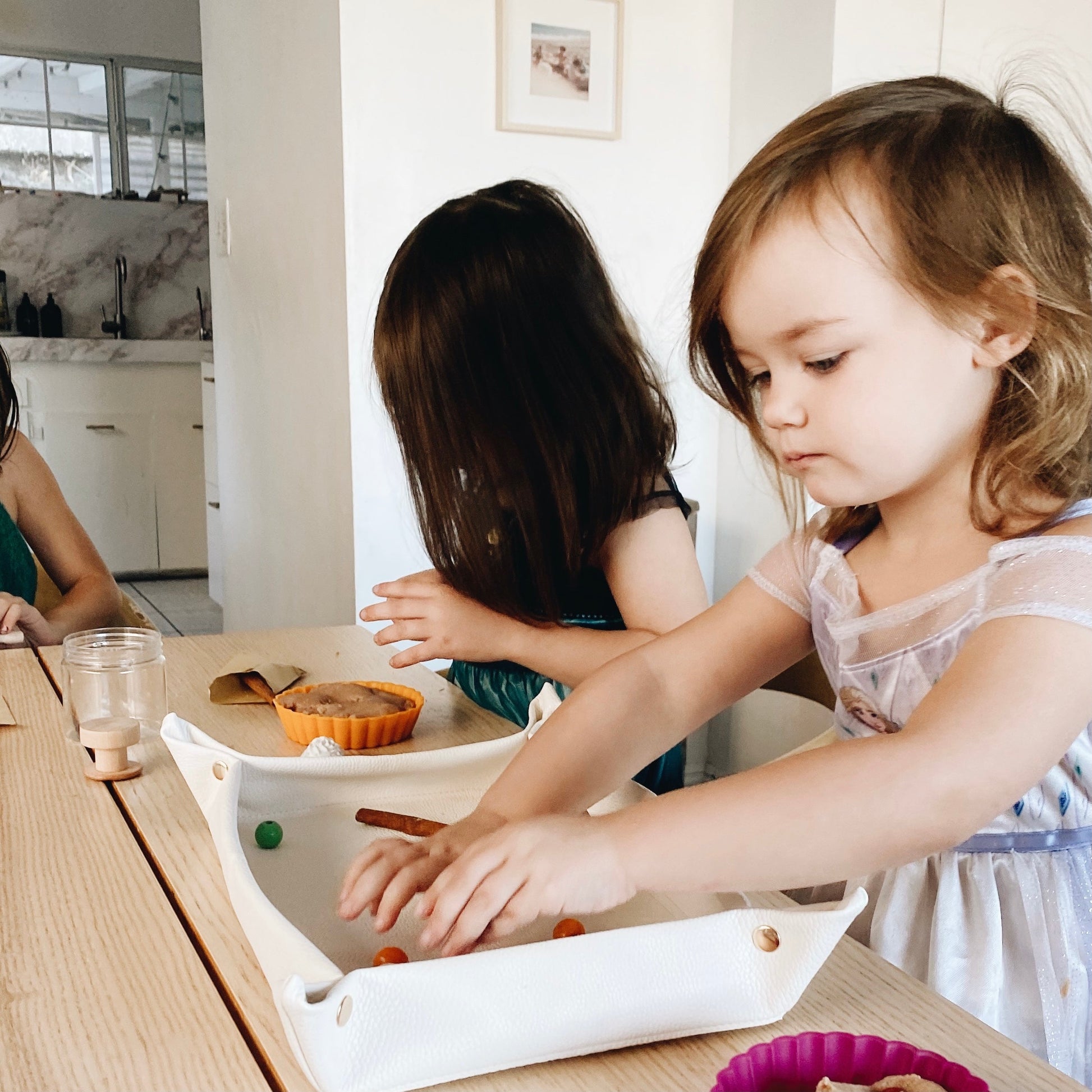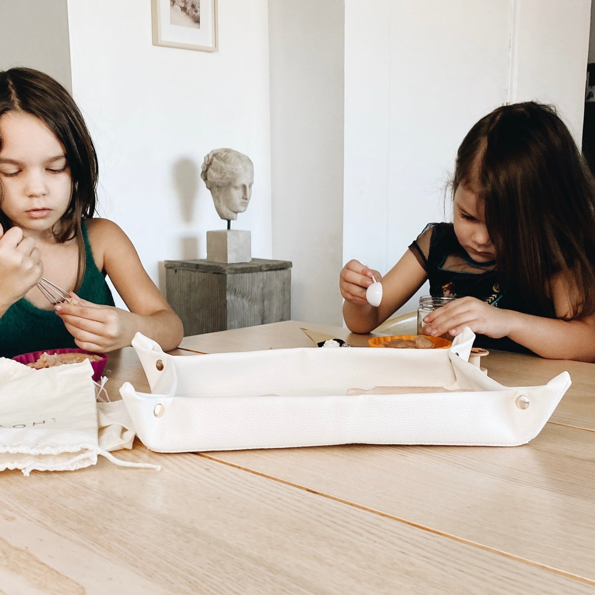 HOYO's versatile vegan leather mat can be used for sensory play, meal times, traveling, or even as a changing pad! Easy to wipe clean and store in it's reusable storage bag.